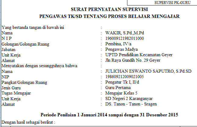 adalah formulir yang berisi keterangan perorangan dguru atau kepala sekolah dan satuan nilai dari